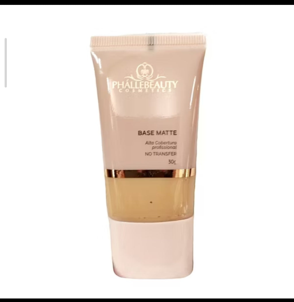 A Base Matte da PhálleBeauty possui alta cobertura profissional e não transfere.